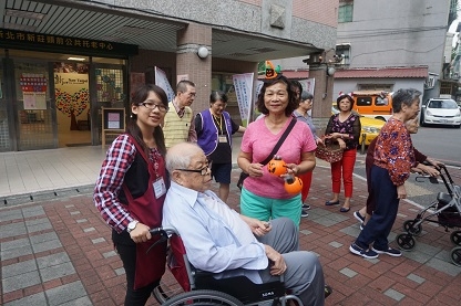(新北市新莊頭前公共托老中心)公托長者去社區 社區阿姨給糖eat!