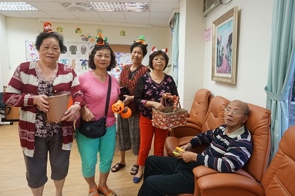沒有可怕的裝扮,只有感動的陪伴! 謝謝社區阿姨們,在萬聖節的這天,刻意戴上南瓜帽,散播糖果散播愛, 一起與公托長輩,Trick or Treat!
