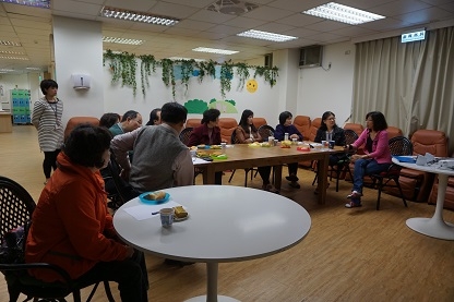 家屬座談會邀請到社團法人台灣失智症協會 副秘書長李會珍老師來為家屬授課,活動方式採溫馨聚餐方式,一邊享用點心一邊聊天相互分享彼此的問題,由老師提供社會福利的諮詢參考,讓家屬們獲益良多也得到了許多不同的支持性的資訊。