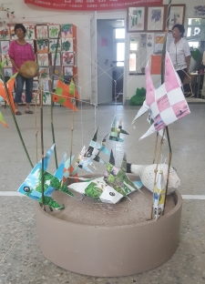 三芝三和的長輩們 這幾個禮拜都在認真的練習 準備參加10/3(三) 由三芝區公所及馬偕醫院合辦的「健康活力秀」比賽 只要沒有上課的空檔 大家就抓緊時間趕緊練習! 由手語舞蹈課程林雪紅老師編排設計 串接1.牽水牛 2.農村曲3.咱攏是吃台灣米共三首曲目 照片中是表演所需要的道具, 這些稻草人、魚塭、牛車、米袋…等, 全部都是長者們自己製作的喔!