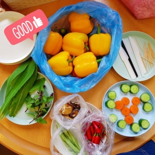 特別選用當季食材,色彩鮮豔且種類多樣化,挑選有明顯氣味之食材,透過顏色、形狀及氣味等,來達到認知促進及感管刺激的效果。