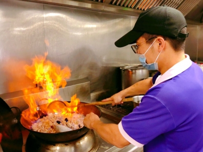 原本我們可愛的 #湘淩老師 預備好材料,想要親自下廚...沒想到,中央大主廚— #阿龍師傅 竟然親臨公托、立刻手抄鍋鏟~齁住全場!