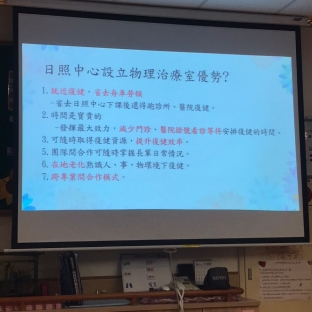 另外...關於治療和復健的部分,我們也預備了講座:「#物理治療師在日照中心的角色」介紹 #治療評估、#生活自立教室、以及 #復健器材 們。