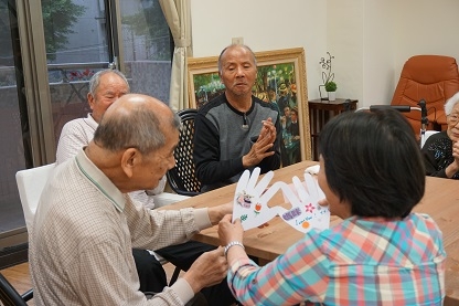手做卡片「媽媽的手」時間,鼓勵男性長輩製作並送給另一半,女性長輩則可以回饋送給自己,活動的最後並邀請一位男性長輩在家人準備接送回家時,拿起卡片祝福另一半並大聲地說I Love You,讓太太相當感動,也增進兩人之間的親密關係。