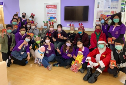 的眾天使們~來給同仁報佳音囉!傳達主耶穌基督為我們誕生的好消息~一邊唱起平安夜、再送上好吃的聖誕糕(聖誕糕上面的貼紙,皆由長輩們加工貼製而成)