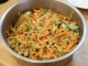 南瓜提前一天削皮去籽、進蒸籠,香菇預先切成小塊。隔天炒金勾蝦、煮米粉後拌炒。