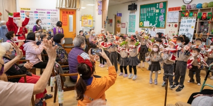 兩班聖誕熱舞後,還有暖暖的搥背環節~爺奶們都好珍惜這可愛的互動時間~有一位愛唱歌的奶奶....甚至把平常唱的"白鷺鷥車畚箕"不自覺地換成"Jingle bells"