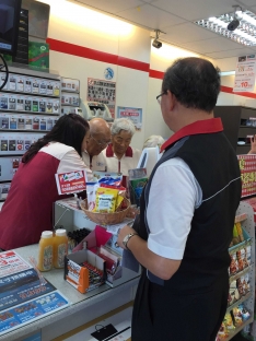 是今天參與活動中年紀最高的長者是93歲阿嬤,今天來參與活動的長者,共有15位阿公阿嬤,來超商一圓頭家夢。