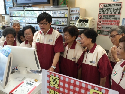 叮咚的一聲,走進便利超商,迎接客人的員工,怎麼全都是銀髮長輩,由雙連社會福利基金會與便利超商以及三芝區公所合作,今(17)日上午舉辦一場「不老店長,一圓頭家夢」的活動,看到阿公阿嬤們穿上掛有自己名牌的制服,感覺相當新鮮,由超商人員熱情帶著長輩實際的體驗,補貨點貨上架,還有在收銀機台前結帳,就連高齡93歲的阿嬤,都覺得好有趣、超開心的。
