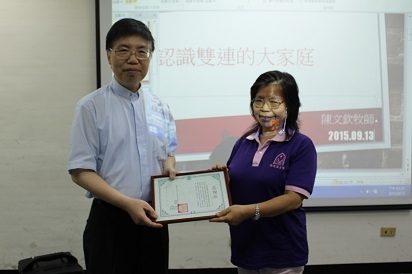 陳文欽董事長 - 頒發感謝狀給居服員李芳英(每月奉獻)