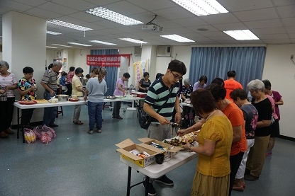 一大早,所有長輩都很高興帶著自己的拿手菜來到公托,不論是自己種植的有機蔬菜還是親手製作的甜點蛋糕,都顯示出原來銀髮俱樂部的會員都身懷絕技,一時之間,擺放美食的空間就瀰漫著飯菜香,讓人不禁期待著中午美食嘉年華的時間快點到來。