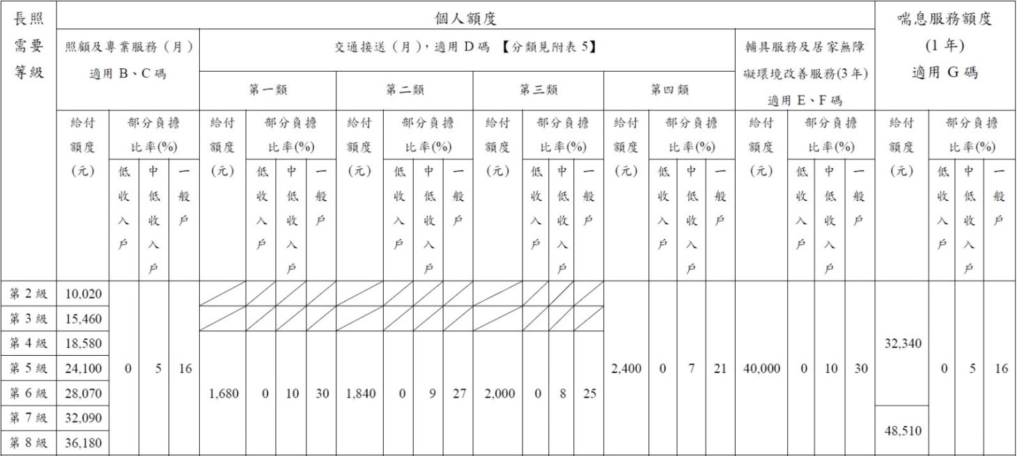 三、 長照項目及給付標準