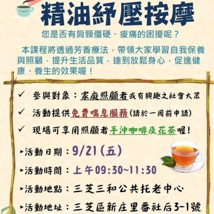 活動地點:三芝三和公共托老中心(三芝區新庄里番社后3