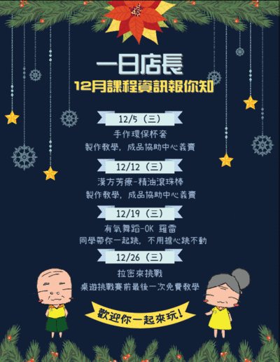 【課程資訊】雙連樂齡 - 一日店長12月課表