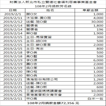【公告】108年2月份捐款芳名錄