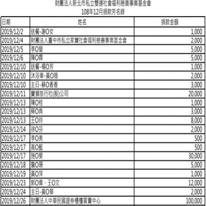 【公告】108年12月份捐款芳名錄-1