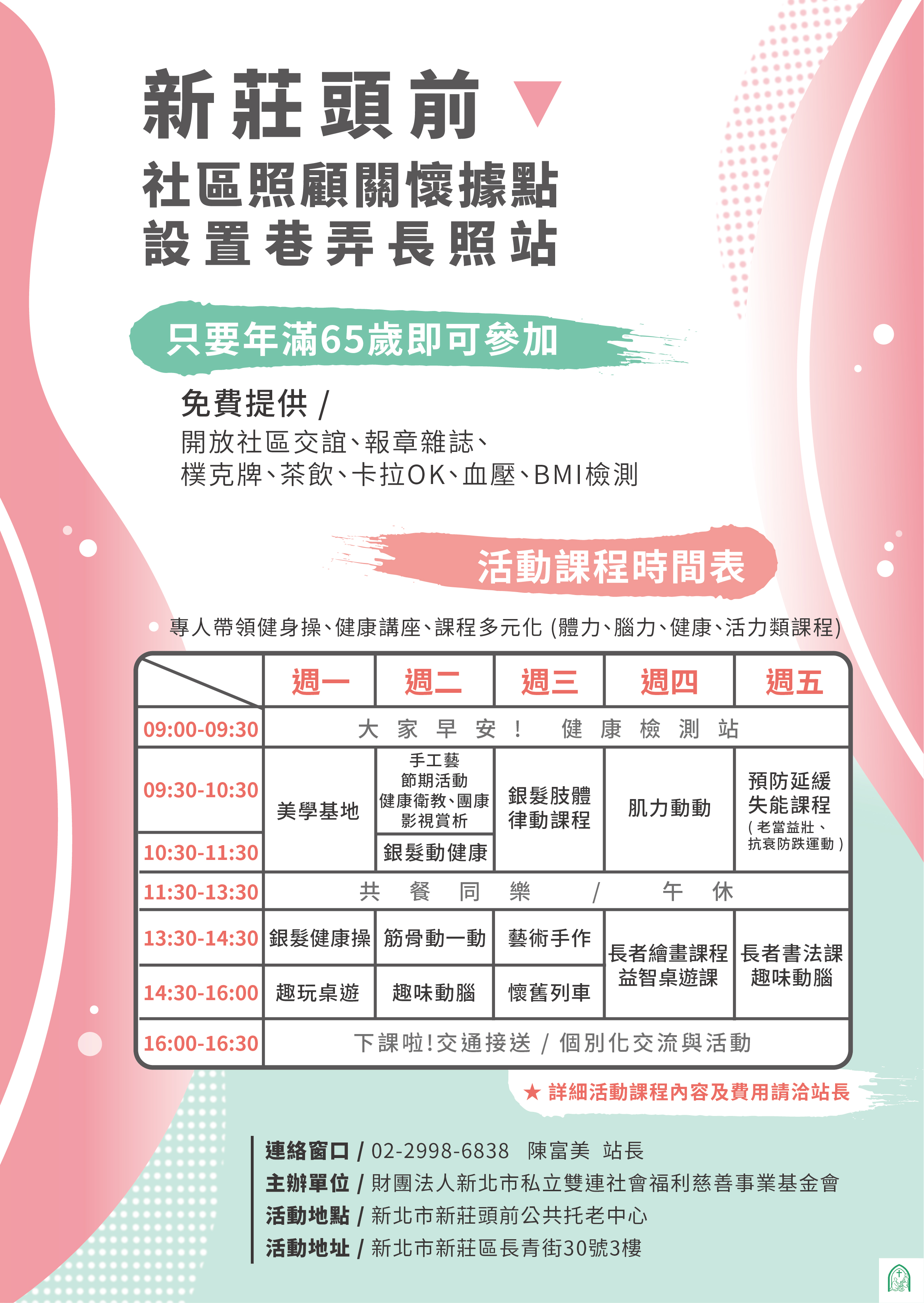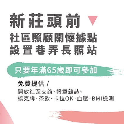 【新莊頭前社區照顧關懷據點設置巷弄長照站】課表上線囉!
