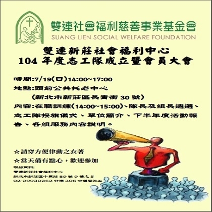 (雙連新莊社會福利中心)雙連基金會志工隊新莊分隊成立大會暨104年度會員大會