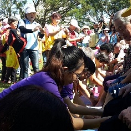 謝謝聯合報系文化基金會的媒合,讓雙連有幸參加由南亞塑膠公司所主辦的南亞心泰山情公益淨山活動,我們的阿公阿嬤相當樂在其中,雖然活動前都很緊張,但上台表演後讓他們自信大增,十分感謝企業團體提供這麼棒的舞台資源給雙連,聯合報與南亞的愛心真是社福界的福氣,活動中的洗腳儀式也呼應雙連logo的精神。