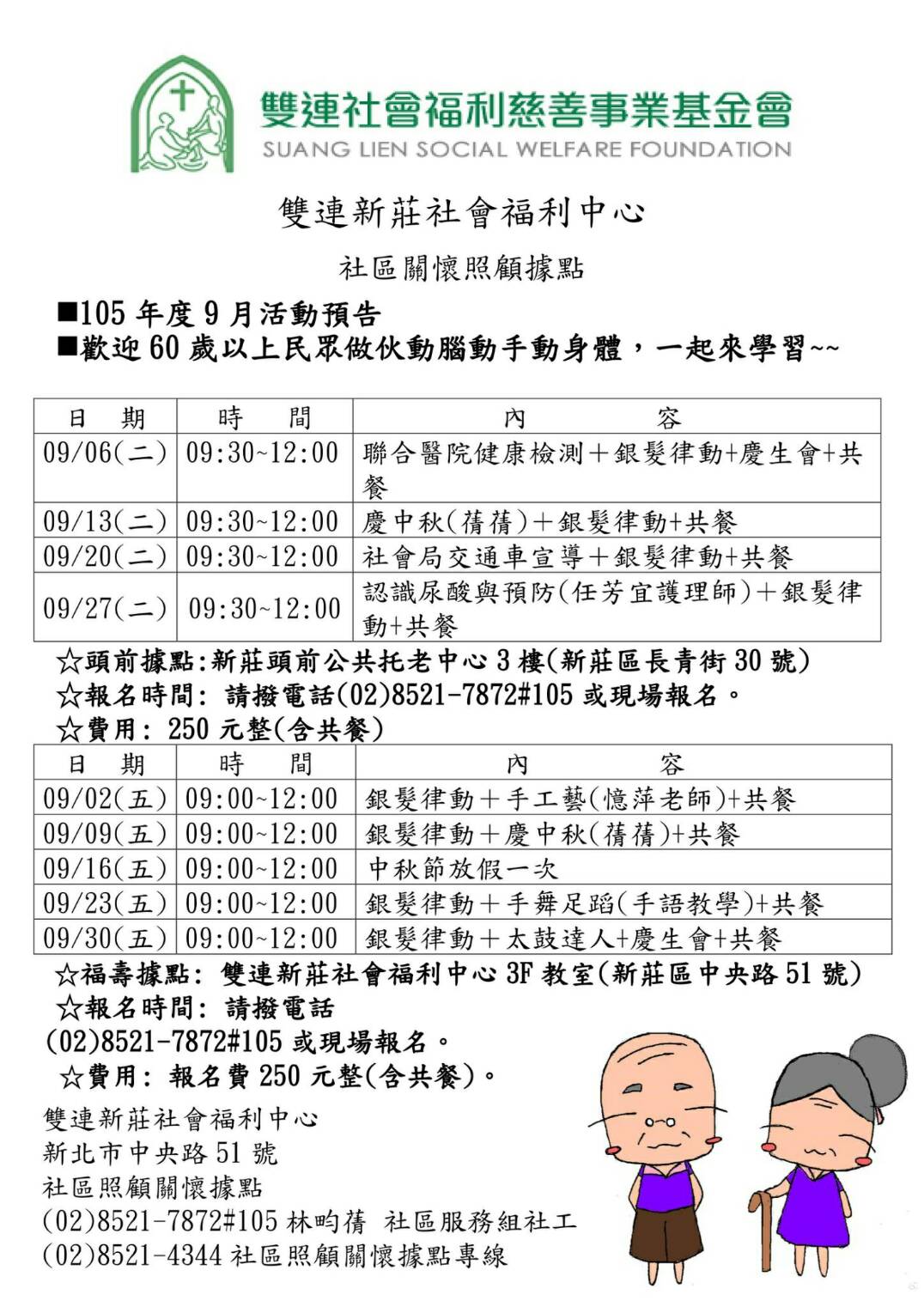 (雙連新莊社會福利中心)9月社區照顧關懷據點健康促進課程出爐囉~!